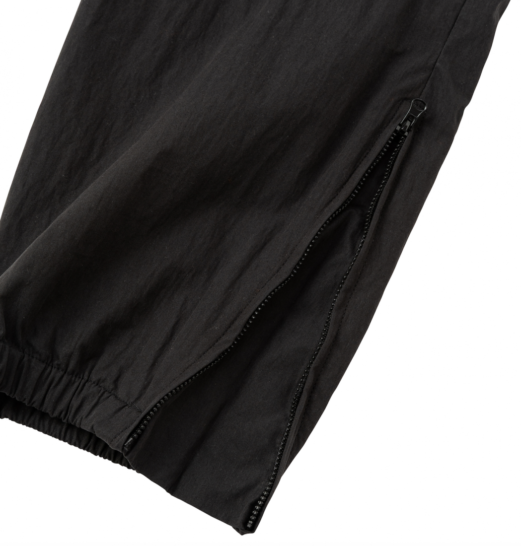 コットンナイロン素材を使用したバーサタイルトラックパンツ。