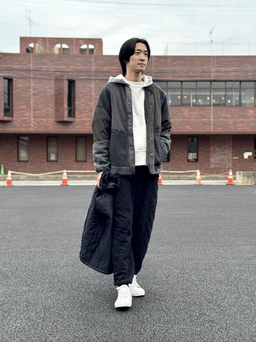 ワイドなシルエットですが、袖をシャープにしているため、野暮ったくならず着用いただけます。