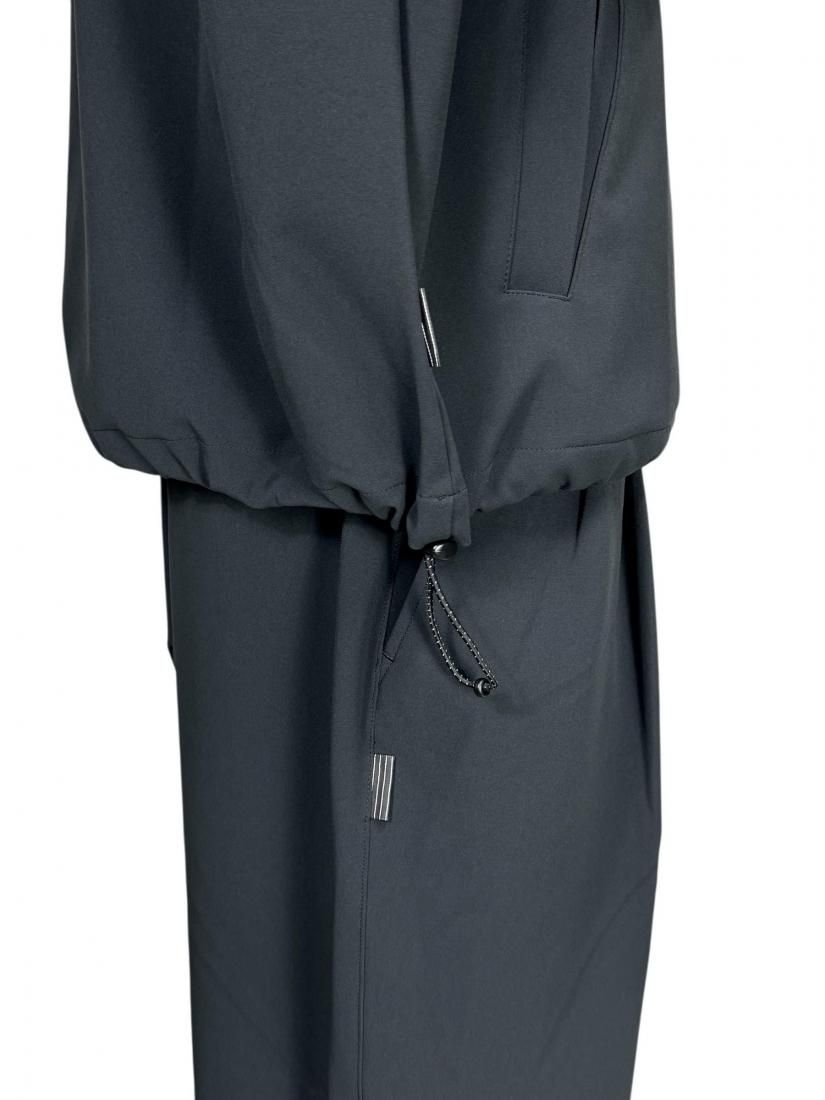 裾のドローコードでシルエットアレンジ可能なオーバーサイズのハーフジップジャケット。