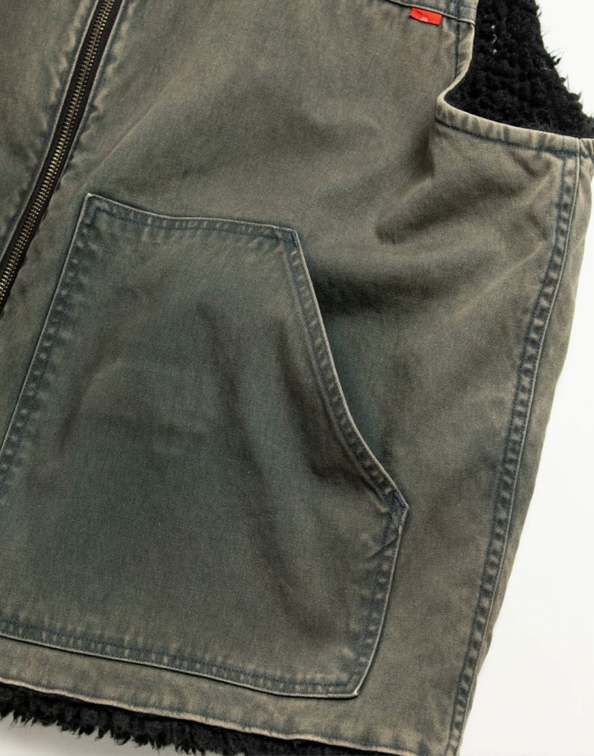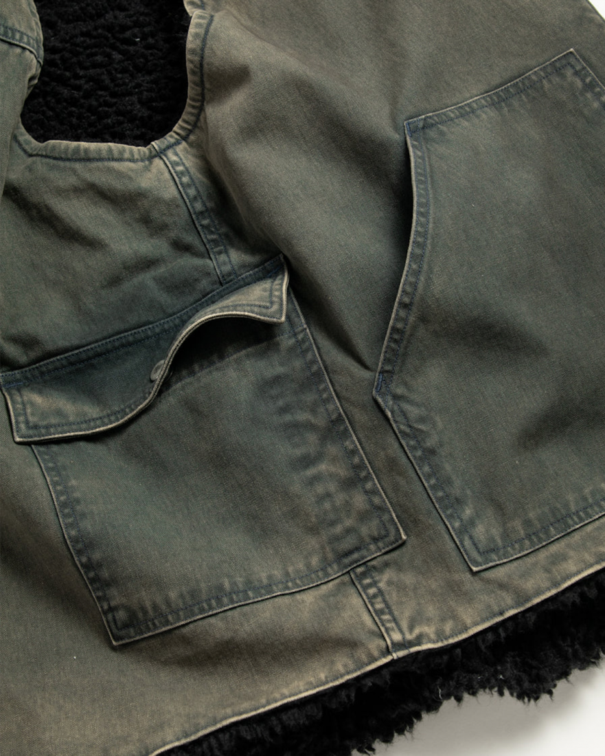 リバーシブルで着用が可能なダック×ボアのワークベスト。